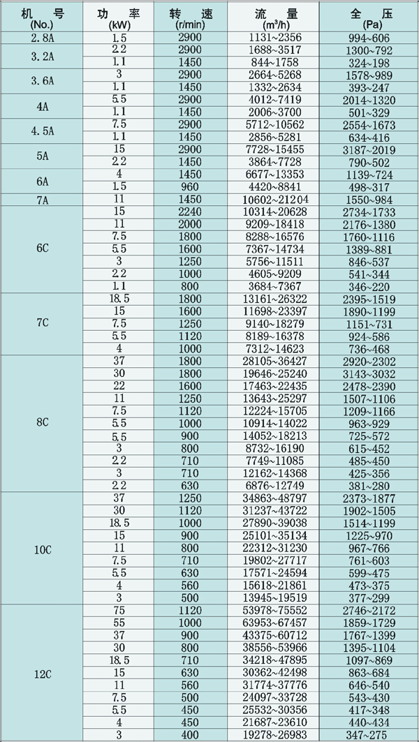 F4-72型玻璃鋼防腐通風機其性能參數與安裝尺寸與4-72型離心通風機相同。